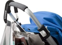 De super stevige aluminium Luvion Strollerhook (kinderwagen haak) is hét perfecte product voor iedere ouder. Altijd een plek om je (extra) tas aan te hangen. Klik de robuuste Strollerhook aan de stang van je kinderwagen en hang er alle tassen aan. Het rubberschuim antislip laag zorgt ervoor dat de haak niet weg glijdt en mooi op z’n plek blijft.